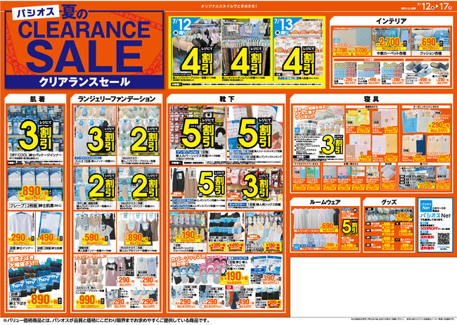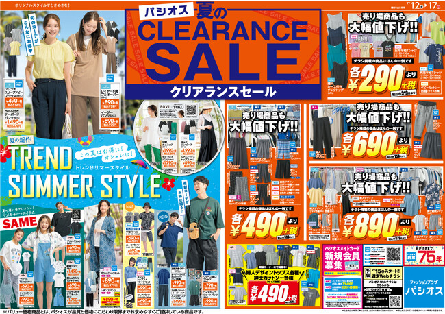 ファッションプラザ パシオスで、7月12日(水)より、「夏のクリアランスセール」を開催いたします。
