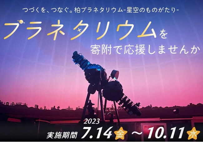 図書館では、開館以来47年間、メンテナンスしながら大切に使用してきましたが、これからも継続して投影を行うため、今回、投影機のオーバーホール(分解整備)を実施することとしました。この修繕費の一部について皆さまからご支援をいただきたく、「つづくを、つなぐ。柏プラネタリウム―星空のものがたり―」と題したガバメントクラウドファンディングを行います。