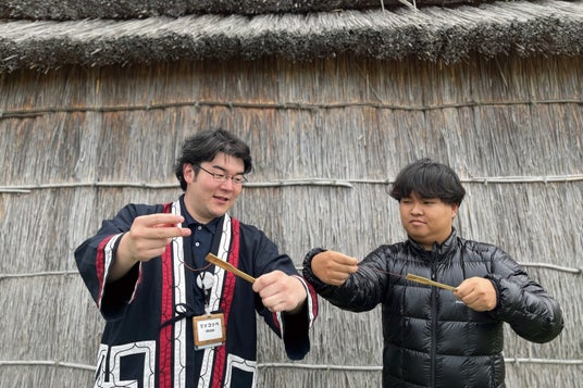 アイヌ伝統の楽器、ムックリ(口琴)を体験!基本的な持ち方や3種類の音の変え方を学びます。