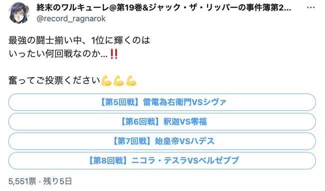 2023年8月8日より『終末のワルキューレ』ベストバウトアンケートをTwitter公式アカウントにて開催中!!