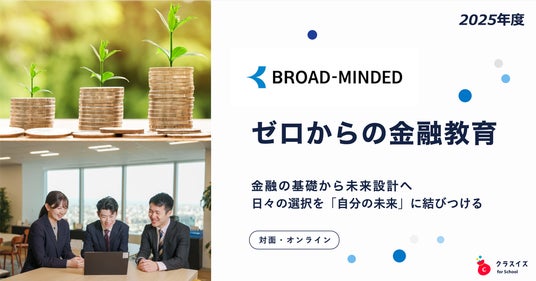 株式会社BatonLink(本社:兵庫県神戸市 代表取締役:八木 祐輔、以下当社)は、当社が運営するクラスイズ for School(https://class-es.com/)にて、2月18日(火)より、ブロードマインド株式会社(本社:東京都渋谷区 代表取締役社長:伊藤 清、以下ブロードマインド)と連携をした2025年度の金融教育プログラムの参加募集を全国の高等学校を対象に開始します。