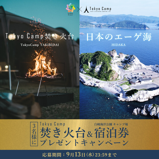 キャンプブランド『TokyoCamp(トーキョーキャンプ』を運営する合同会社DRive(本社:大阪府箕面市、代表:吉川了)は9月1日付で「和歌山県ひだかエリア観光サポーター」に任命され、それを記念し「TokyoCamp焚き火台」と「白崎海洋公園キャンプ場宿泊券」が当たるプレゼントキャンペーンを開催しています。
