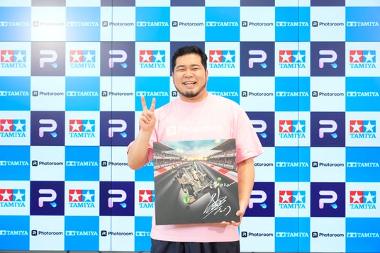 高精度の自動切り抜き・背景除去ができるAI画像編集アプリ「Photoroom」(本社:フランス、パリ)は、総合模型メーカーの株式会社タミヤ(本社:静岡市)とコラボレーションした「Photoroomで魅せるタミヤの世界」表彰イベントを7月24日(木)に開催いたしました。ゲストとして令和ロマンの松井ケムリさんが登壇し、トークセッションにおいてはミニ四駆に関するエピソードや模型写真の画像加工に関する想いを語りました。