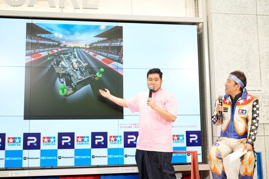 冒頭では、Photoroom伊藤と全国各地で開催されているタミヤ主催のミニ四駆イベントでMCを務めるMCガッツさんが登壇。