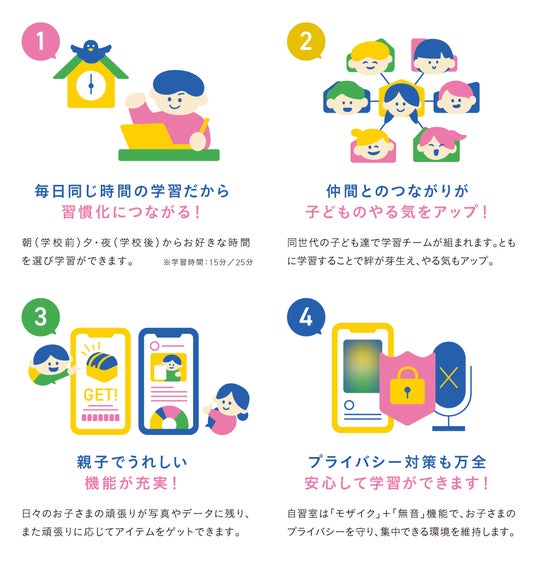 いつもの仲間と”ともに学ぶ”ことでお子さまのやる気を引き出し、毎日の学習習慣化を実現します。