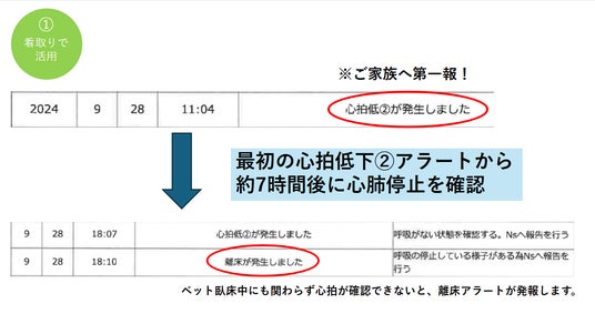 心拍低下の兆候をアラートで通知し、ご家族への報告が迅速に行えるようになった。