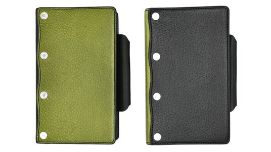 バイブルサイズと呼ばれだして40周年のシステム手帳記念イヤーにバイブルサイズをファーバーカステルのコラボ商品として発売。今回のコラボレーションのために用意された革はペン軸の色と同じ、オリーブグリーンに染め上げたKawacoyaオリジナルのプレミアムピッグスキン。表面に適度な凹凸が残され、ピッグスキン本来の風合いを楽しんでいただけます。同社手帳のチャームポイントでもあるスナップボタン構造はそのままで、ボタンの色はペン先と同じシルバーです。