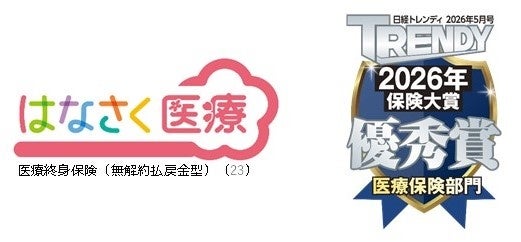 はなさく生命保険株式会社(代表取締役社長:山根隆男、以下「当社」)は、このたび日経トレンディ2026年5月号「保険大賞2026」において、はなさく医療(正式名称:医療終身保険(無解約払戻金型)(23))が医療保険部門で優秀賞を受賞したことをお知らせします。