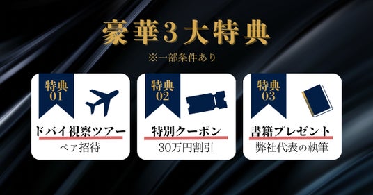 特典1 ドバイ視察ツアーにペアで無料招待(50万円相当)