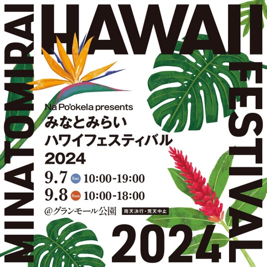 本年9月、世界最高峰のフラ競技会「メリーモナークフェスティバル」の優勝者、入賞者によるイベント「Nā Po‘okela (ナーポオケラ=ハワイ語で「最上級」「Best」の意)」がぴあアリーナMMで開催されることに合わせ、横浜みなとみらい地区のグランモール公園を中心に、誰でも無料で楽しめる「みなとみらいハワイフェスティバル2024」を2024年9月7日(土)、8日(日)に開催します。