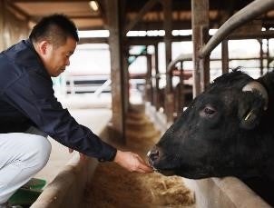 牛にとってストレスのない環境づくりとして、社交的な牛と内向的な牛で、パドックで飼育する牛の頭数の調整やストレス発散のため、皮下脂肪を滑らかにするブラッシングマッサージ。さらに、牛の血液検査を実施し、コレステロール値、ストレス値、エネルギー消費率を可視化、分析など、血統の見極め、牛の健康状態の繊細なる管理、そして門外不出の独自の配合飼料などによって最高品質の黒毛和牛を作り出しています。