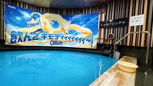 「オリエンタル赤坂」の浴室を「クーリッシュ」のCMに登場するバニラドラゴンがジャック!「クーリッシュ水風呂」や「く~りっし湯シャンプー」を体験でき、「ミニクーリッシュ バニラ」のプレゼントも!