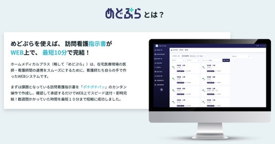訪問看護ステーション月を運営する合同会社傍楽(本社:京都府久世郡久御山町)が、訪問看護指示書発行システム『ホームメディカルプラス(めどぷら)』を2024年1月1日に販売を開始しました。開発は、自治会の電子回覧板であるICTプラットフォームサービス『結ネット』(まちにてぃWithユイネット)など地域ICTアプリケーションの開発と展開を行う株式会社ダヴィンチアプリケーションズ(本社:札幌市)が行っております。