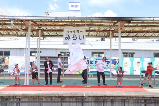 また、当日は当社がラッピング広告を展開している列車が記念ヘッドマークを装着して登場。ホームに新設された副駅名看板の前では記念撮影が行われ、車両前では親子連れによる交流の風景も見られるなど、地域に根差した温かみのあるイベントとなりました。