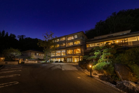 日本一の星空を見られることで知られる阿智村の一番の高台に立地しており、絶景露天と上質な料理を楽しむことができます。