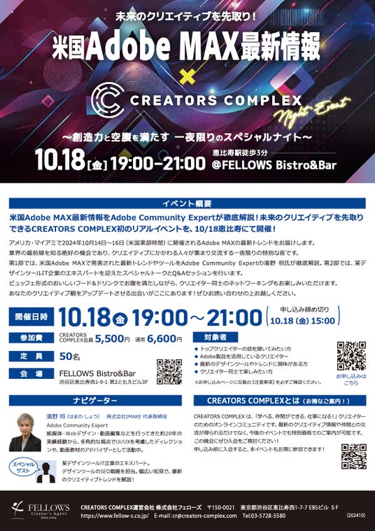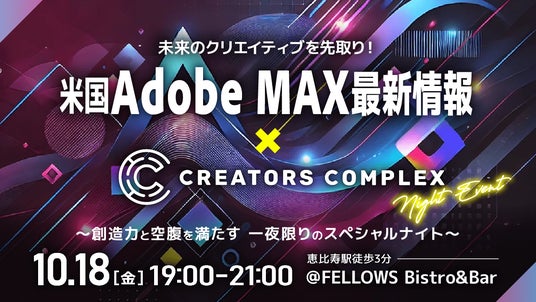 未来のクリエイティブを先取り!米国Adobe MAX最新情報×COMPLEX ~創造力と空腹を満たす一夜限りのスペシャルナイト~ 株式会社フェローズ「CREATORS COMPLEX」主催