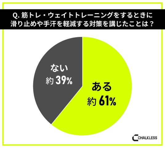 手汗や滑りに関して課題に感じている人が多い一方、実際にグリップ力を高め、滑りにくくする工夫をしている人はどのくらいいるのでしょうか。回答者に「筋トレ・ウェイトトレーニングをするときに、滑り止めもしくは手汗を軽減する対策を講じたことはありますか?」と聞きました。