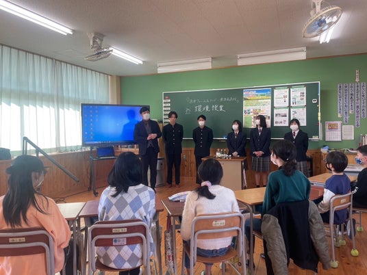 地元の小学校で環境教育授業、ESD教育を行う生徒達