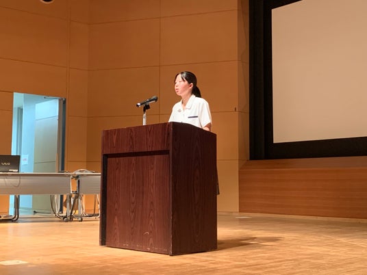 鹿児島大会で生物多様性とESDに関して意見発表する唐津南高校の生徒