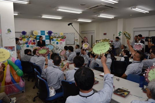 第一部では、掛川自動車学校職員を対象に、三木選手への壮行会・懇親会として、今シーズンに向けた抱負や思いを語る挨拶を行いました。その後は、職員からの質問コーナーや記念撮影タイムとなりアットホームな雰囲気で盛り上がりました。