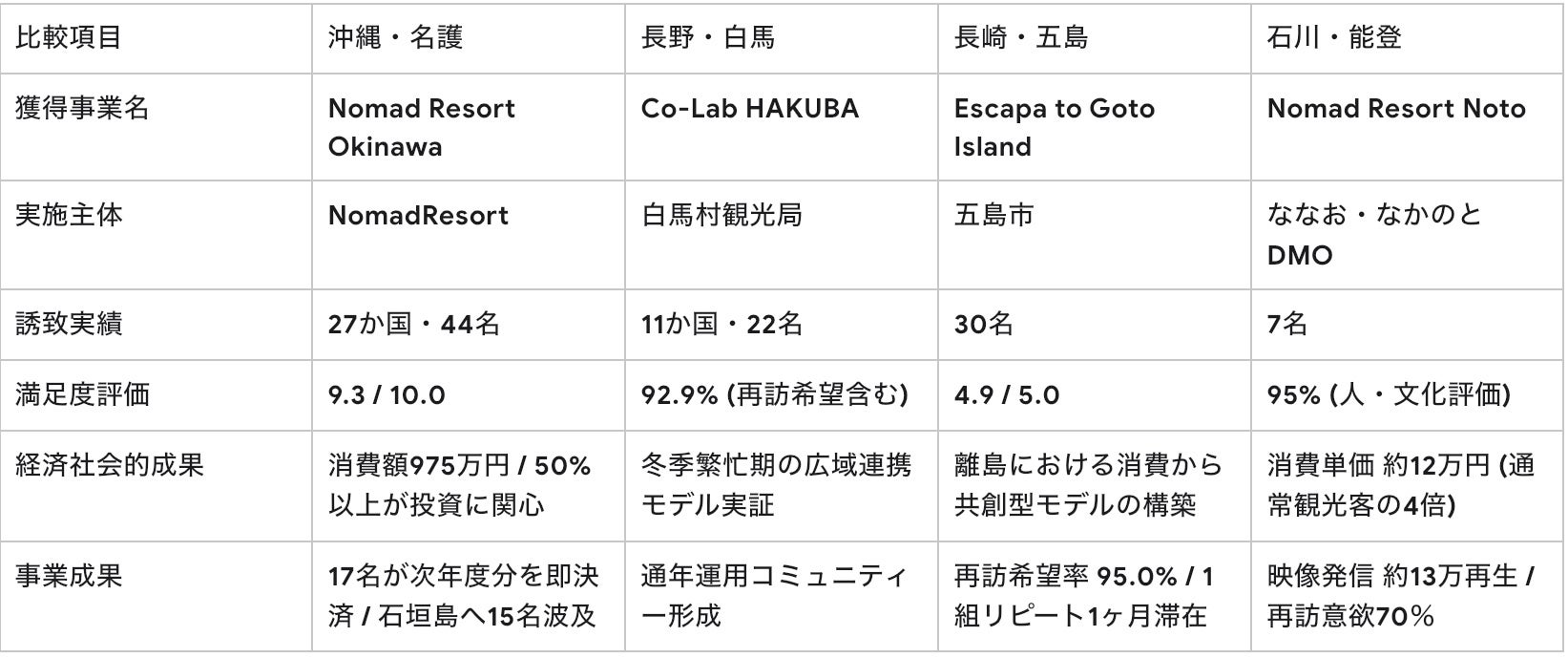 広域連携の実証: 糸魚川・大町・小谷等を横断して滞在する「白馬モデル」を提示。再訪希望率92.9%を達成しました。