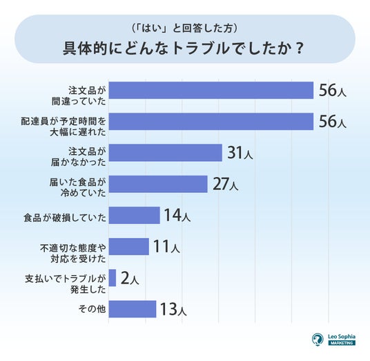 トラブルの主な要因は「注文ミス」と「配達遅延」