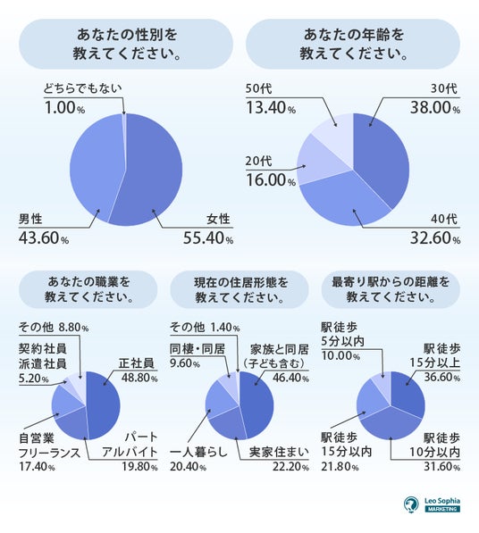 【調査概要の詳細】あなたの性別・年齢・職業・住居形態・最寄り駅からの距離を教えてください。