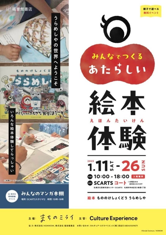 株式会社まちのミライは、カルチュア・エクスペリエンス株式会社/株式会社HONNOW/福音館書店と連携し、絵本・マンガイベントを開催いたします。