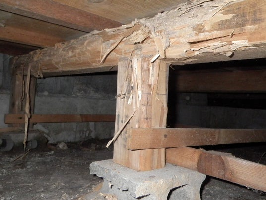 シロアリ被害にあった床下の木材