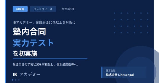 株式会社Linksenpai(所在地:東京都渋谷区、代表取締役:吉田志織)が運営するIB(国際バカロレア)専門 オンライン家庭教師サービス「IBアカデミー」は、2026年3月、IBコースに在籍する生徒を対象とした塾内合 同実力テストを初めて実施しました。各生徒の現在の学習段階・理解度・スコアの状況を一括で可視化。講師 が生徒一人ひとりに最適な指導を提供できる体制をさらに強化します。