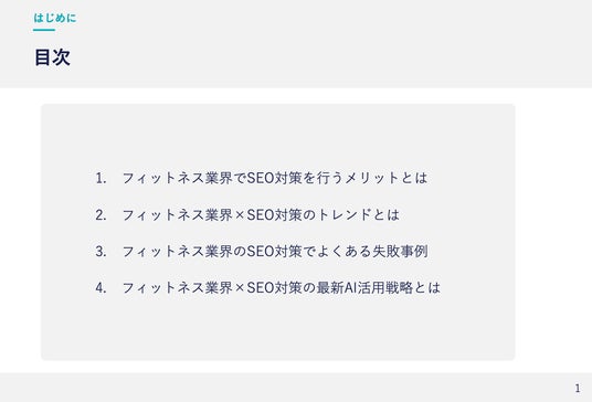「2025年版 フィットネス業界向けAI×SEOトレンドレポート」は、当社公式ウェブサイトより無料でご請求いただけます。この資料はAI化が進む現代において、フィットネス業界でできるSEOでのAI活用法を徹底的に解説しています。