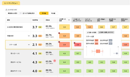 <U-ZERO エンゲージメントサーベイ機能画面イメージ:ヒートマップビュー>