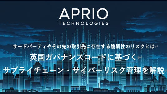 英国・欧州の金融セクターはじめとした重要インフラセクターを中心に、サイバーセキュリティの健全性評価などを提供する、英国ロンドン発のサイバーセキュリティ企業「APRIO TECHNOLOGIES(アプリオ・テクノロジーズ)」は、2025年に英国政府が策定した「サイバー・ガバナンス実践規範(Cyber Governance Code of Practice)」を軸に、取締役会レベルでのサプライチェーンのサイバーリスク管理をテーマとしたホワイトペーパー「英国ガバナンスコードに基づくサプライチェーン・サイバーリスク管理」を公開しました。