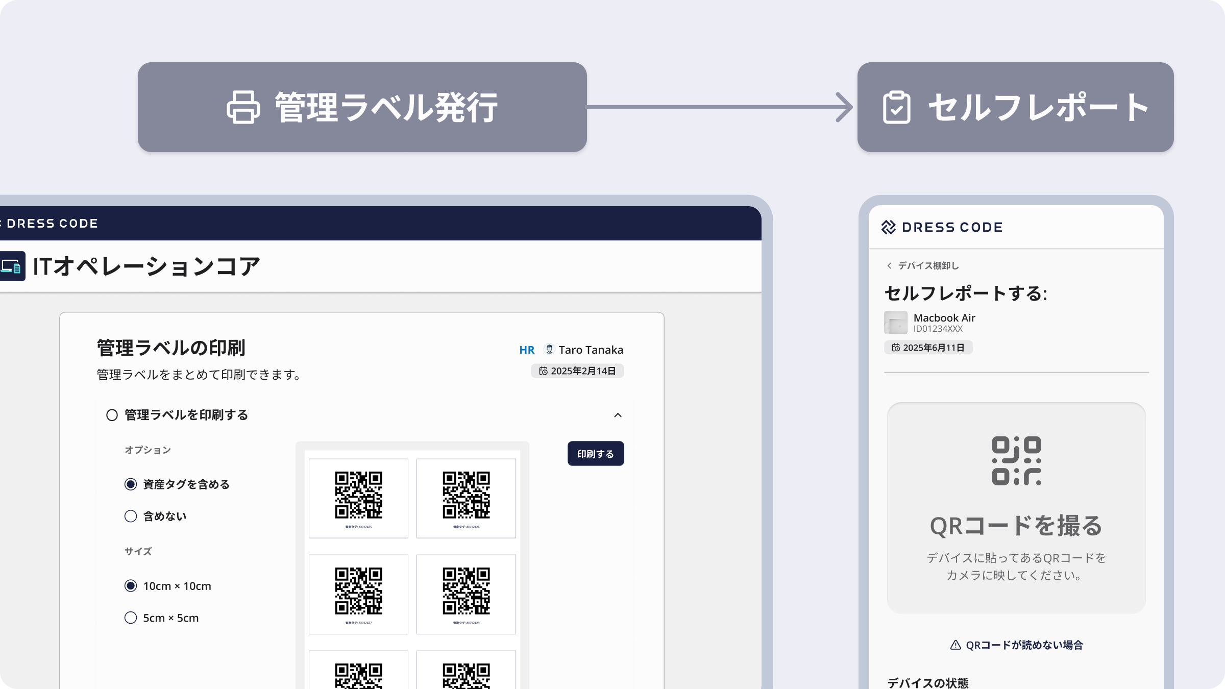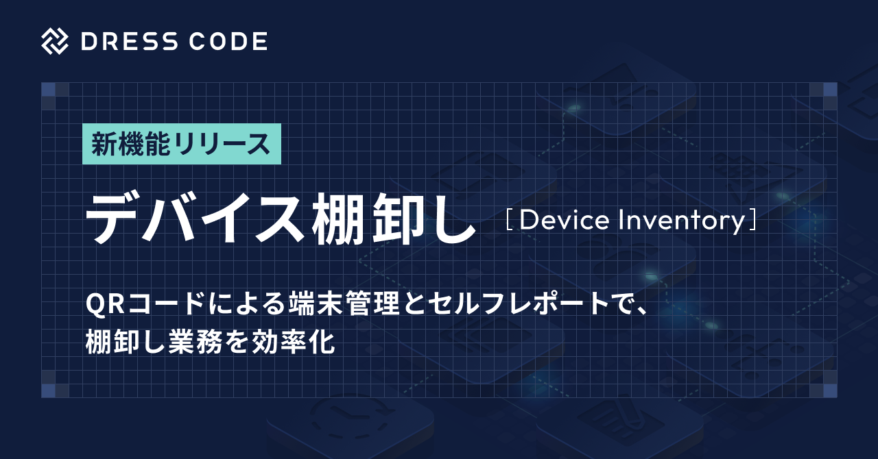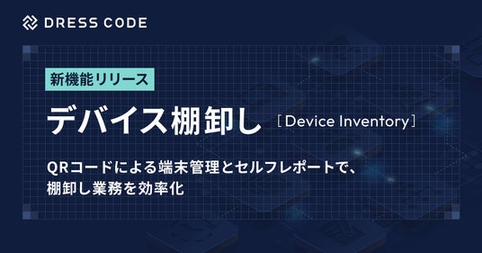 Dress Code株式会社(本社:東京都中央区、代表取締役CEO:江尻祐樹)は、IT資産の業務効率化を推進するDRESS CODE「IT Force」シリーズにおいて、QRコードによるデバイス棚卸し機能をリリースしました。本機能では、端末ごとにQRコードを発行し、現物を台帳情報と紐づけて管理することができます。棚卸しの際は、従業員デバイス所有者や棚卸し担当者がQRコードを読み取るだけで利用状況を報告でき、手作業での確認や集計を行う必要がありません。デバイス棚卸し機能を活用することで、これまで煩雑だった棚卸し業務を、短時間で正確かつ効率的に実施できるようになります。