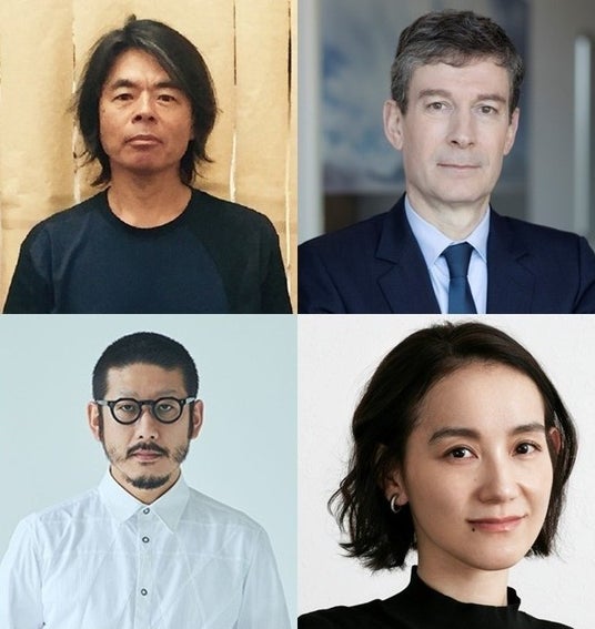 審査員の方々。左上から時計回りに、日比野克彦氏(東京藝術大学長)、ノルベール・ルレ氏(LVMHモエヘネシー・ルイヴィトン・ジャパン合同会社社長)、篠原ともえ氏(アーティスト)、森永邦彦氏(ANREALAGE デザイナー)