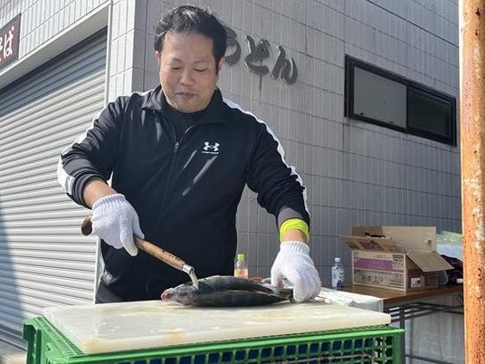 今回の開催地である浜松オートレース場でも開催前から大きな注目を集め、定員180名分の整理券はイベント開始前の10時20分には配布終了となりました。釣り堀の周囲には多くの来場者が集まり、魚がヒットするたびに歓声が上がるなど、レース場とはひと味違う熱気に包まれました。今回は新たに三枚おろしサービスを実施し、釣った魚をその場でさばいて持ち帰ることができる点も好評でした。