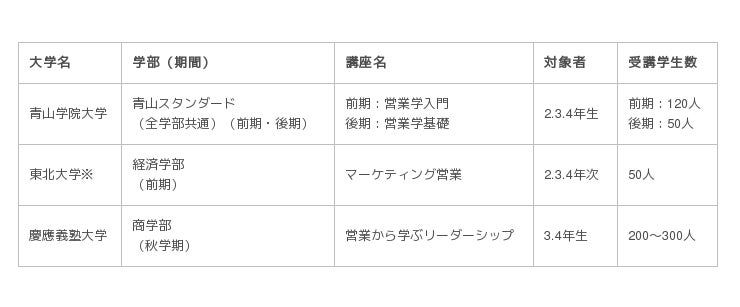 トレーニングを受ける機会は極めて少ないのが現状です。3,200人以上のライフプランナー(生命保険セールスのプロフェッショナル)を擁する当社が、大学で営業をテーマにした講座を開設することで、