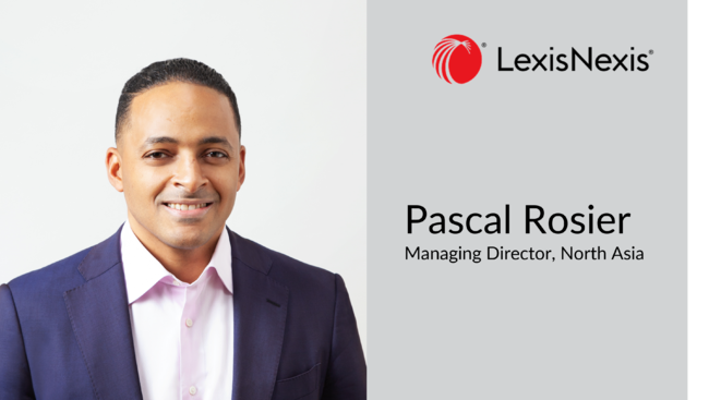 こんにちは、パスカル・ロズィエと申します。レクシスネクシス・ジャパンの代表取締役社長としてご挨拶できることを嬉しく思います。レクシスネクシスでは、最先端のテクノロジーと分析手法を活用して、最も包括的で革新的なリーガル/ビジネス情報をお客様に提供いたします。お客様が法に基づいた意思決定を行い、急速に変化するビジネス環境をナビゲートできるように、北アジア地域での取り組みを主導できることを嬉しく思います。テクノロジーに対する私の経験と情熱により、強力かつ新しい意思決定/分析ソリューションを提供し、予期せぬ出来事に直面したお客様の支援に注力いたします。北アジアのお客様やパートナーと協力し、業界にプラスの影響を与えられるよう尽力いたします。