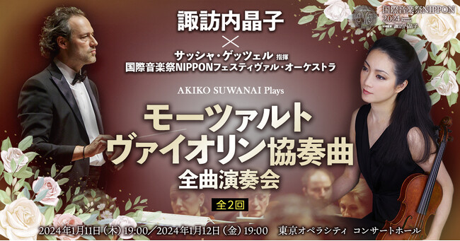 諏訪内晶子が芸術監督を務める<国際音楽祭NIPPON>、8回目となる今回のテーマは「ウィーン」。モーツァルトが10代の頃に書き上げたヴァイオリン協奏曲全5曲を、二夜に渡り 全曲演奏いたします。