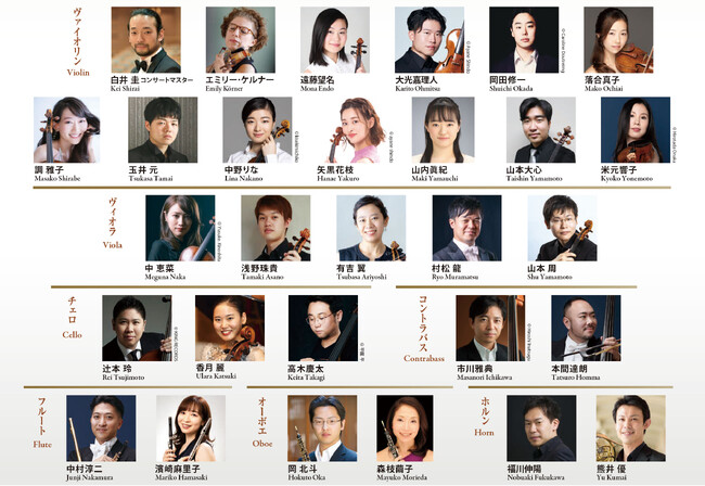 そして新たに創設されるフェスティヴァル・オーケストラには、コンサートマスターに白井圭、首席奏者にシュトゥットガルトSWR響のエミリー・ケルナー、中恵菜、辻本玲、福川伸陽をはじめ、国内外で活躍する名手たちが結集します。仙台国際コンクール優勝の中野りな、大阪国際室内楽コンクールで優勝したカピバラ・ピアノ・クァルテットのメンバーでもある岡田修一、マーストリヒト音楽院教授をつとめ 国際音楽祭NIPPONマスタークラスの講師も務めた米元響子、同マスタークラス出身の落合真子、香月麗など充実のメンバーは、まさに”オールスターオーケストラ"。