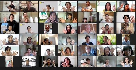 オンラインでのキックオフミーティングの参加ママと支援先団体のみなさん(2023年度)。赤ちゃん連れで和気あいあいと進行します。