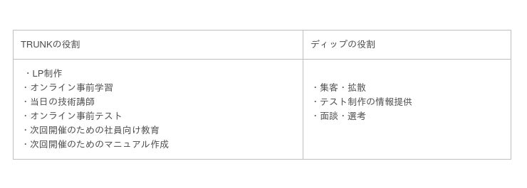 TRUNKはこれまで9000名を超えるユーザーにご利用いただいている職業体験・職業訓練のプラットフォームを運営しております。職種はバックエンドエンジニア・データーサイエンティスト・法人営業・デジタルマーケティングなどオンラインでは8職種対応しております。