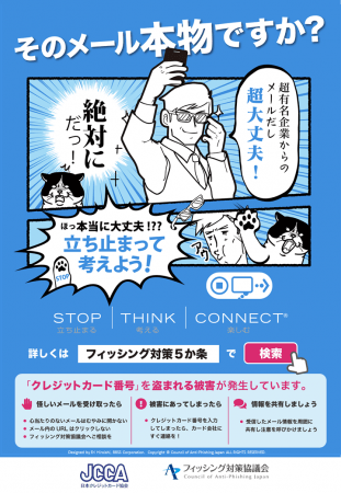 日本クレジットカード協会(略称JCCA、会長 井上 治夫 三菱UFJニコス株式会社代表取締役社長)は、フィッシング対策協議会(会長 岡村 久道)と協業し、偽メール、偽メッセージを発端とするサイバー犯罪被害防止のための啓発キャンペーンを、2019年2月20日より開始いたします。