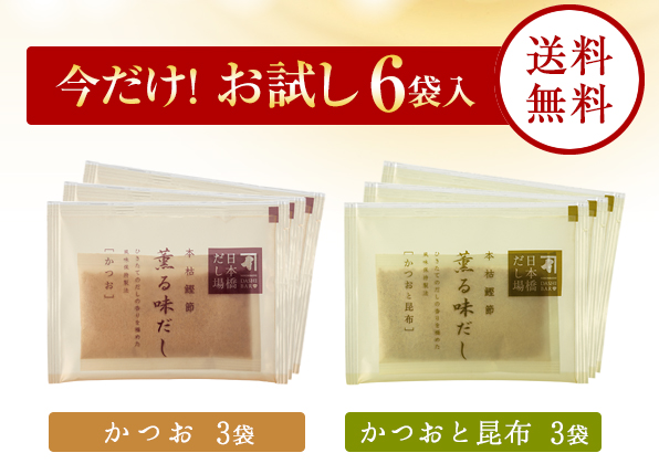 セット内容:本枯鰹節 薫る味だし(かつお)8g×3袋、(かつおと昆布)8g×3袋=計6袋