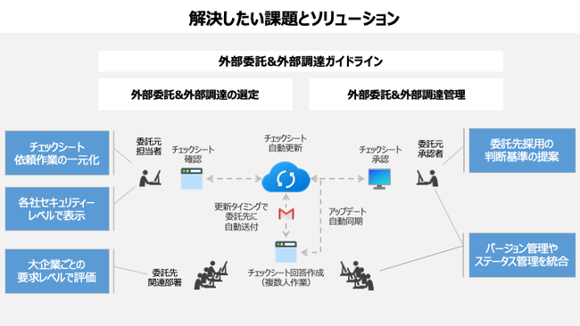 セキュリティチェック業務は、プロジェクトの進行において必要となったクラウドサービス利用時や外部ベンダー受け入れ時にセキュリティ状態をチェックする目的で行います。