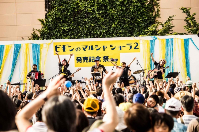 本日6月3日(土)、BEGINが越谷レイクタウンアウトレット駐車場野外特設ステージでフリーライブを開催した。これは5月24日に発売したニューアルバム「ビギンのマルシャ ショーラ2」の発売に伴い、リリース記念祭りとして開催されたもので会場には4500人が集まり