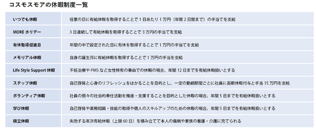 働く場をつくるオフィス事業と、リノベーションをはじめとする建築事業を展開する株式会社コスモスモア(本社:東京都渋谷区、代表取締役社長:枝廣 寿雄、以下「コスモスモア」)は、従業員がワーク・ライフ・バランスを保ちながら、より自分らしく働くことができる企業を目指し、任意の日に有給休暇を取得すると1日あたり1万円(年間2日間まで)の手当てが支給される、「いつでも休暇」制度を新たに設けました。