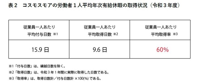 当社はそのような中、有給休暇が取得しやすい風土となるような制度を数多く導入してまいりました。3日連続で有給休暇を取得することで3万円の手当てが支給される「MOREホリデー」、年間で設定された日に有給休暇を取得することで1万円の手当てが支給される「有休取得推進日」、自身の誕生月に1日有給休暇を取得することで1万円の手当が支給される「メモリアル休暇」などを導入し、従業員の積極的な休暇取得促進や自己実現のサポートにつとめてまいりました。そのことにより、建設業全体の平均53.2%に比べ当社の有給休暇取得率は約60%(※表2)と高い値を保っています。今回従来の制度に加えて「いつでも休暇」を導入することで従業員が更に自由に休暇を取得することができ、仕事以外の休暇にも自己投資できるような風土をより一層浸透させる試みです。
