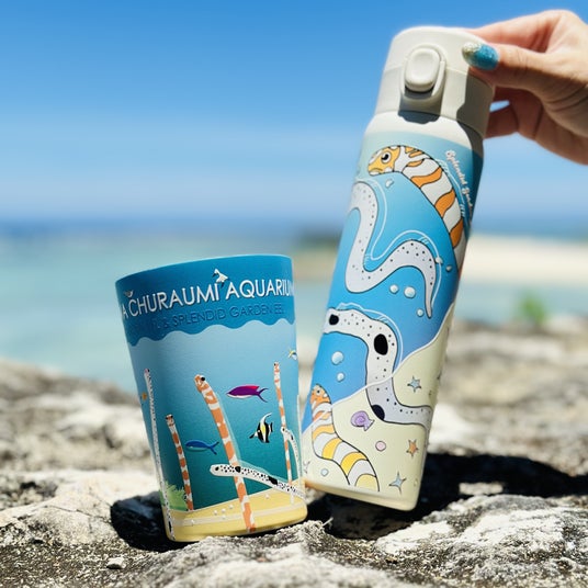 【写真左】オリジナルステンレスタンブラー(450ml)、【写真右】オリジナルステンレスボトル(480ml)。どちらも水族館の飼育員がイラストを手掛けており、持ち運びやすいサイズでこれからの季節にぴったりな商品です。※7月下旬販売予定。
