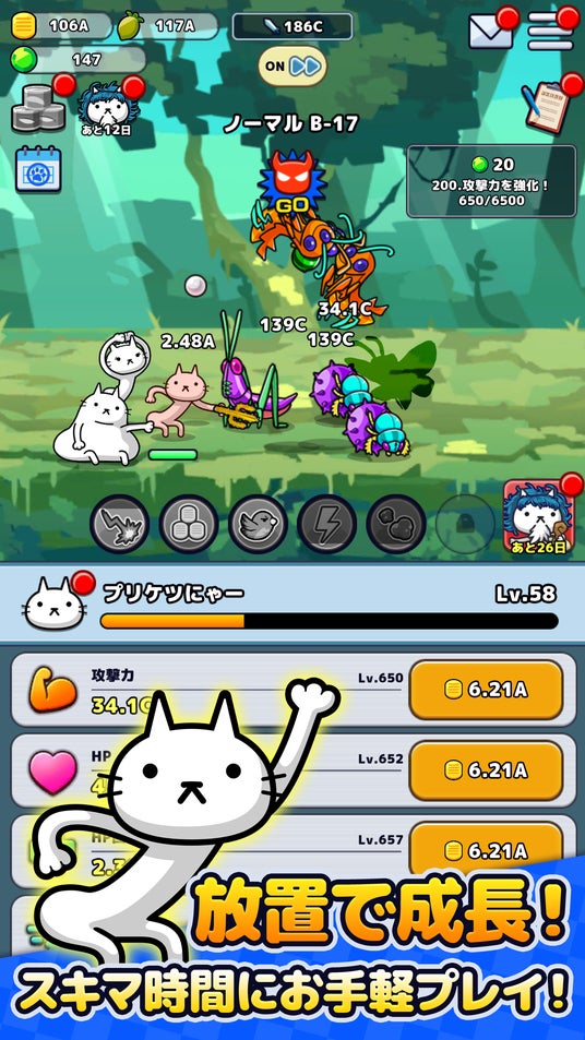 放置で遊べる、お手軽かんたんプリケツの猫(ねこ)の「超レベルアップRPG」!